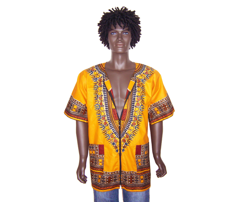 goudgeel met klassieke African dashiki print | het originele, vintage design uit de sixties!